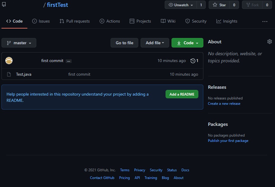이번 포스팅에서는 간단하게 테스트를 하기 위해 firstTest라는 이름으로 repository를 생성하겠다.