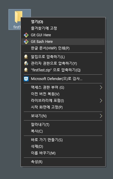 Git Bash를 직접 열어서 cd 명령어를 통해 폴더 위치를 찾아가도 되지만 귀찮다..... 그렇기 때문에 첨부 5의 방법으로 열면 귀찮게 디렉터리를 찾아가지 않아도 폴더의 위치가 지정된 CLI가 열린다.