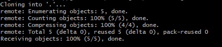 git clone 명령어를 통해 가져온 주소의 저장소를 해당 폴더에 복사하겠다는 뜻이며, 주소 맨 뒤에 한 칸 띄우고 입력해준 마침표는 해당 폴더에 압축을 풀겠다는 뜻이다.
