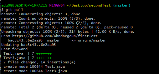 second 폴더에서 GitBash를 열고 git pull 명령어를 입력해주기만 하면 끝이다.