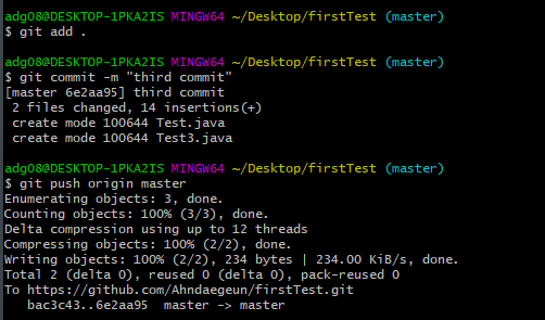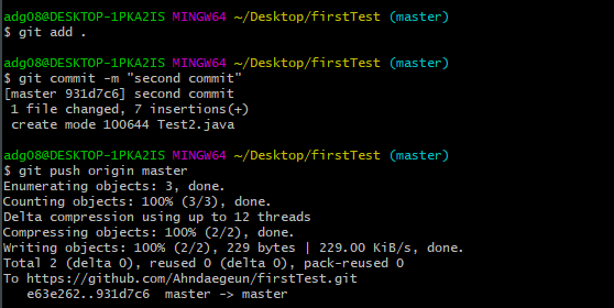 지난 포스팅에 이어서 만들어둔 테스트 폴더에 다른 java파일을 추가해서 업데이트를 진행해보도록 하겠다.