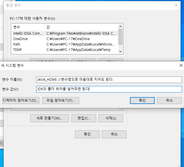 변수 값으로는 JDK의 폴더 위치를 넣어주자