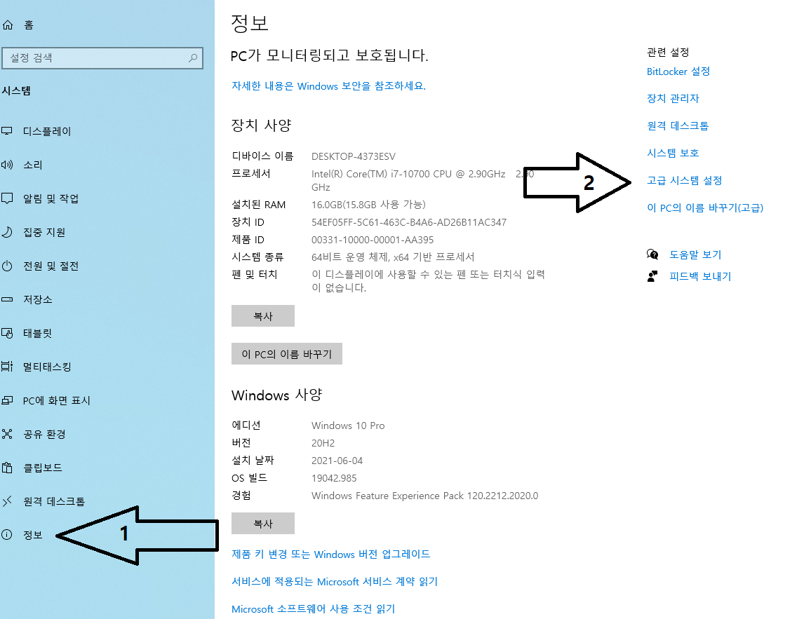 그 뒤에 왼쪽 밑의 윈도 로고에서 우클릭 후 설정에 들어간다.